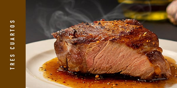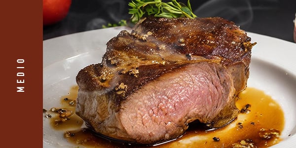 Presenta un 75% de cocción, se observa de un color rojo intenso en el centro, al tacto presenta resistencia y suavidad al mismo tiempo, al degustar es menos jugosa, su jugo es de color rojo marrón.